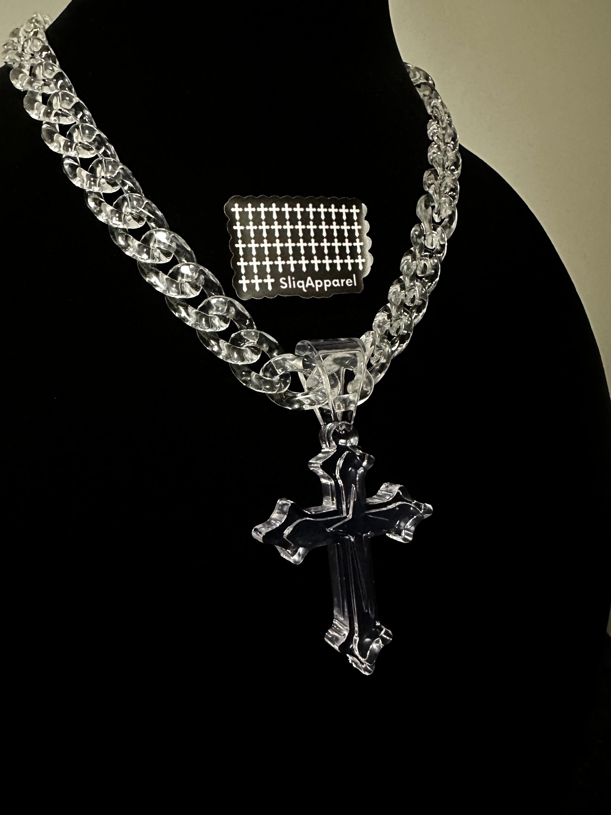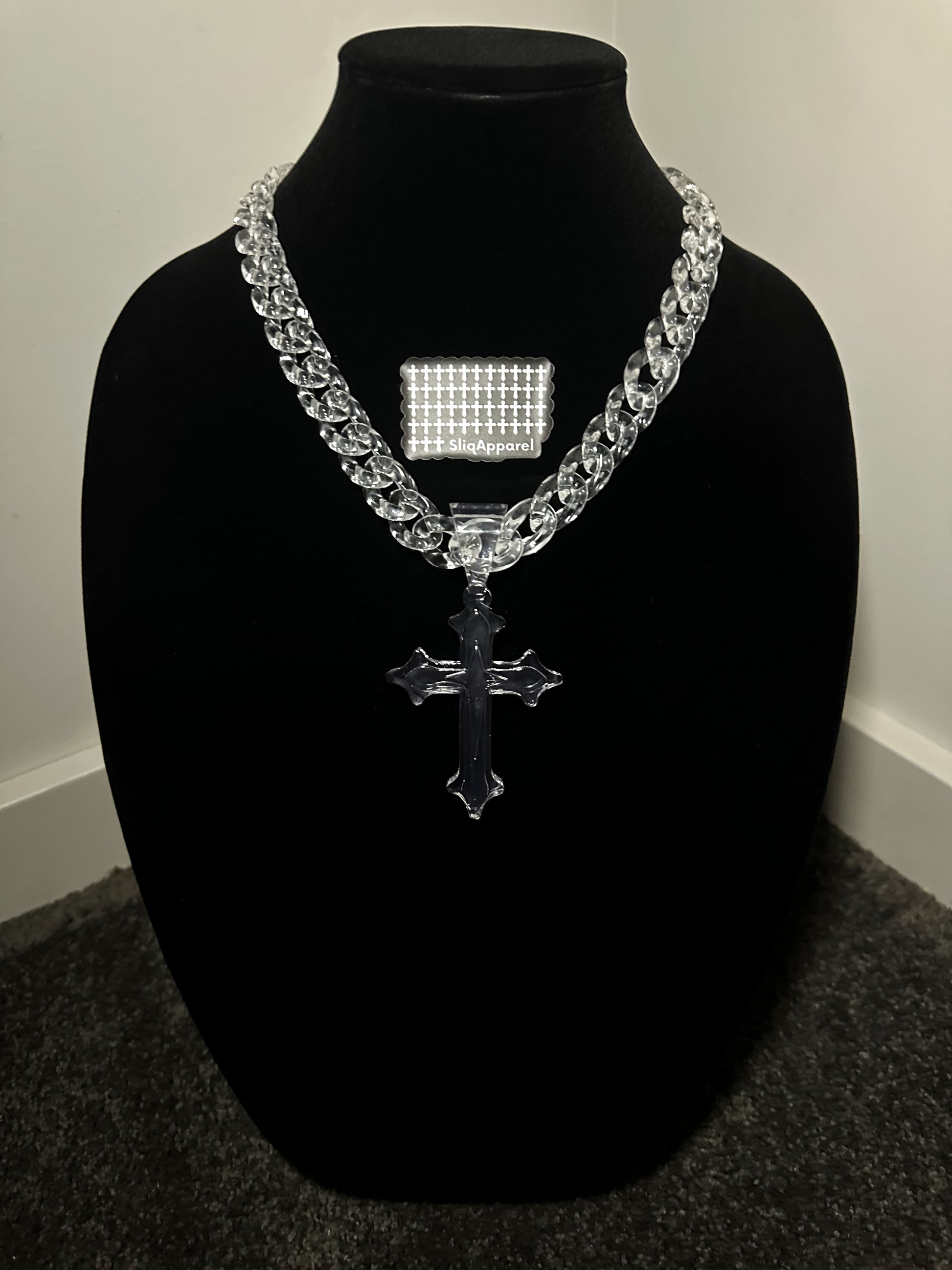 Make a bold statement with our Iced Crystal Cross Chain, designed to elevate any look. Featuring a clear, frosted finish and a sleek cross pendant, this chain is perfect for those who love to stand out. Lightweight, durable, and versatile, it’s the ideal accessory for everyday wear or special occasions. Add a touch of elegance and edge to your collection today!